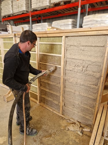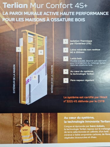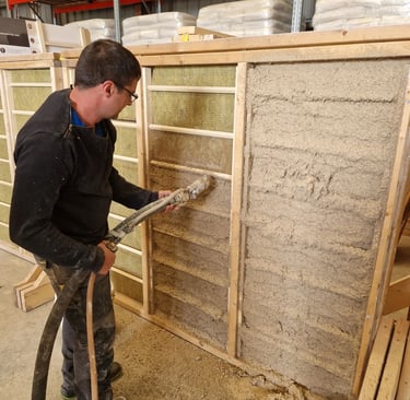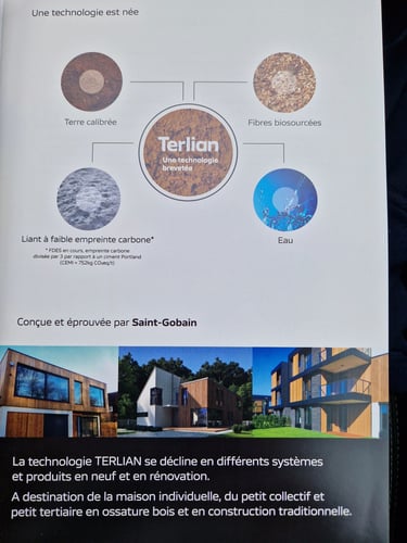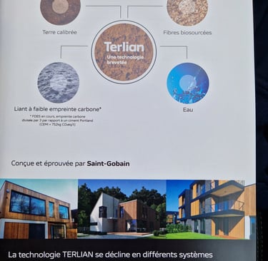 Technologie innovante à base de terre, fibres biosourcées, et liant à faibles empreinte carbonne.