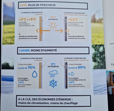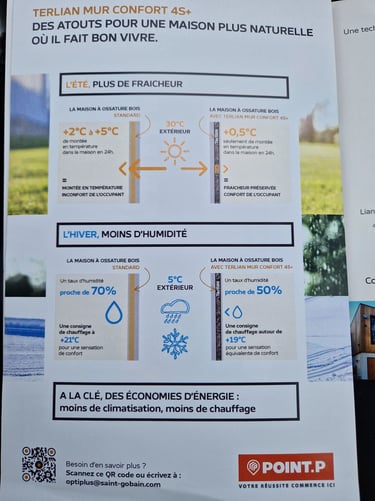 Les avantages: réductions des émissions de CO2, respecte la RE2020, forte inertie et confort dété.